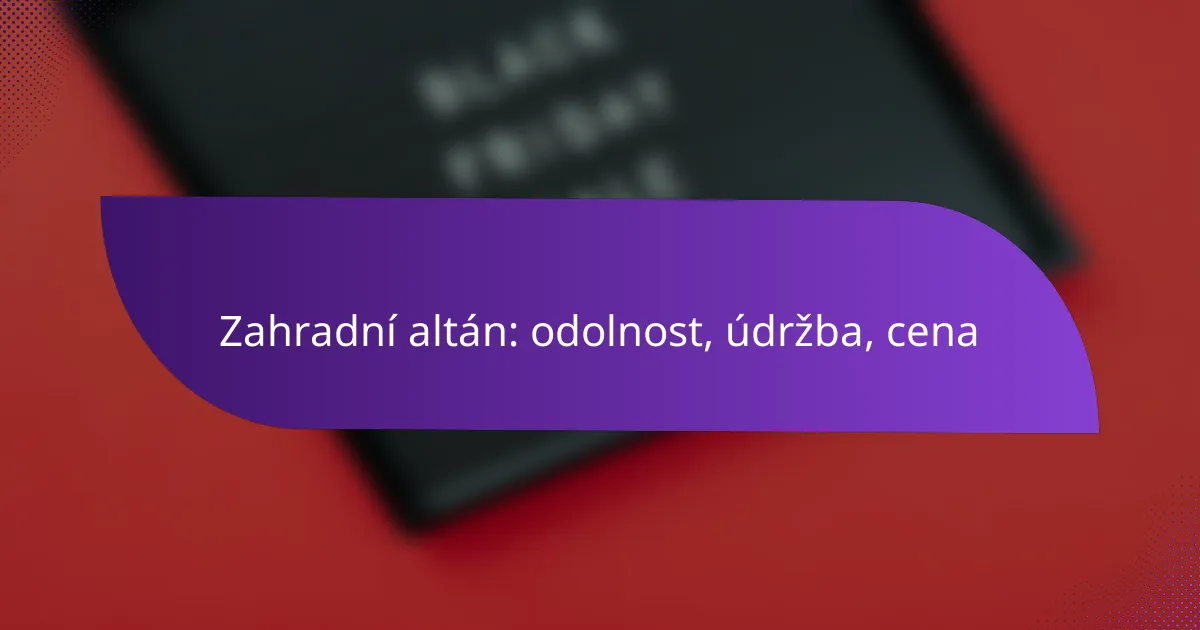 Zahradní altán je skvělým řešením pro zlepšení využití venkovního prostoru, poskytující ochranu před nepříznivým počasím a příjemné místo pro relaxaci. Jeho odolnost závisí na kvalitě materiálů a konstrukce, což zajišťuje dlouhodobou funkčnost. Pravidelná údržba je klíčová pro zachování estetického vzhledu a prodloužení životnosti altánu.