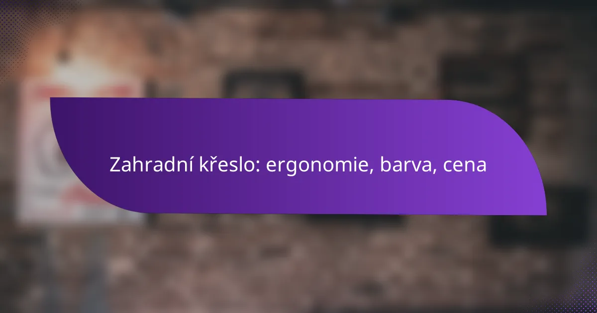 Výběr zahradního křesla je důležitý pro zajištění pohodlí a podpory při venkovním odpočinku. Důležité faktory zahrnují ergonomii, barevné provedení, které ovlivňuje atmosféru zahrady, a cenové rozpětí, které se v Česku pohybuje od několika set do několika tisíc korun v závislosti na kvalitě a materiálu.