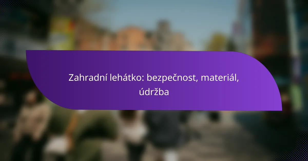 Zahradní lehátko je skvělým doplňkem pro relaxaci na zahradě, avšak jeho bezpečnost, materiál a údržba jsou klíčové faktory pro zajištění pohodlí a dlouhé životnosti. Správný výběr konstrukce a materiálů, jako jsou hliník, textil, plast nebo dřevo, může ovlivnit nejen estetiku, ale i odolnost lehátka. Pravidelná údržba, včetně čištění a ochrany před povětrnostními vlivy, je nezbytná pro zachování jeho vzhledu a funkčnosti.