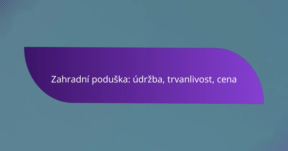 Zahradní podušky jsou nezbytným doplňkem pro pohodlné posezení na zahradě, a jejich údržba je klíčová pro zajištění dlouhé životnosti. Správné čištění, ochrana před povětrnostními vlivy a vhodné skladování mohou výrazně prodloužit jejich trvanlivost, která se pohybuje od několika let až po více než deset let. Ceny těchto podušek se v Česku liší, obvykle se pohybují od několika set korun do několika tisíc, v závislosti na použitém materiálu a kvalitě provedení.