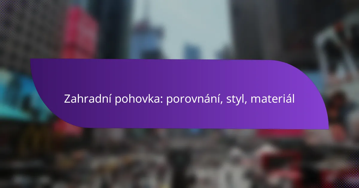 Výběr zahradní pohovky pro české zahrady zahrnuje důležité aspekty, jako jsou materiál, styl a velikost. Je klíčové zohlednit nejen vzhled, ale také odolnost vůči povětrnostním podmínkám a pohodlí. Různé materiály nabízejí specifické výhody, které mohou ovlivnit vaše rozhodnutí při výběru ideální pohovky pro venkovní prostory.