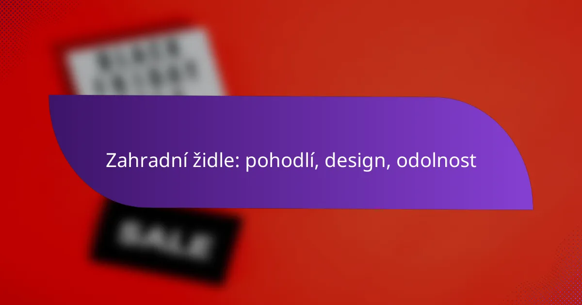 Při výběru zahradních židlí pro maximální pohodlí je klíčové zaměřit se na ergonomii, materiály a možnosti nastavení. Tyto faktory ovlivňují, jak se budete cítit při sezení a jak dlouho si můžete užívat venkovní aktivity bez nepohodlí.